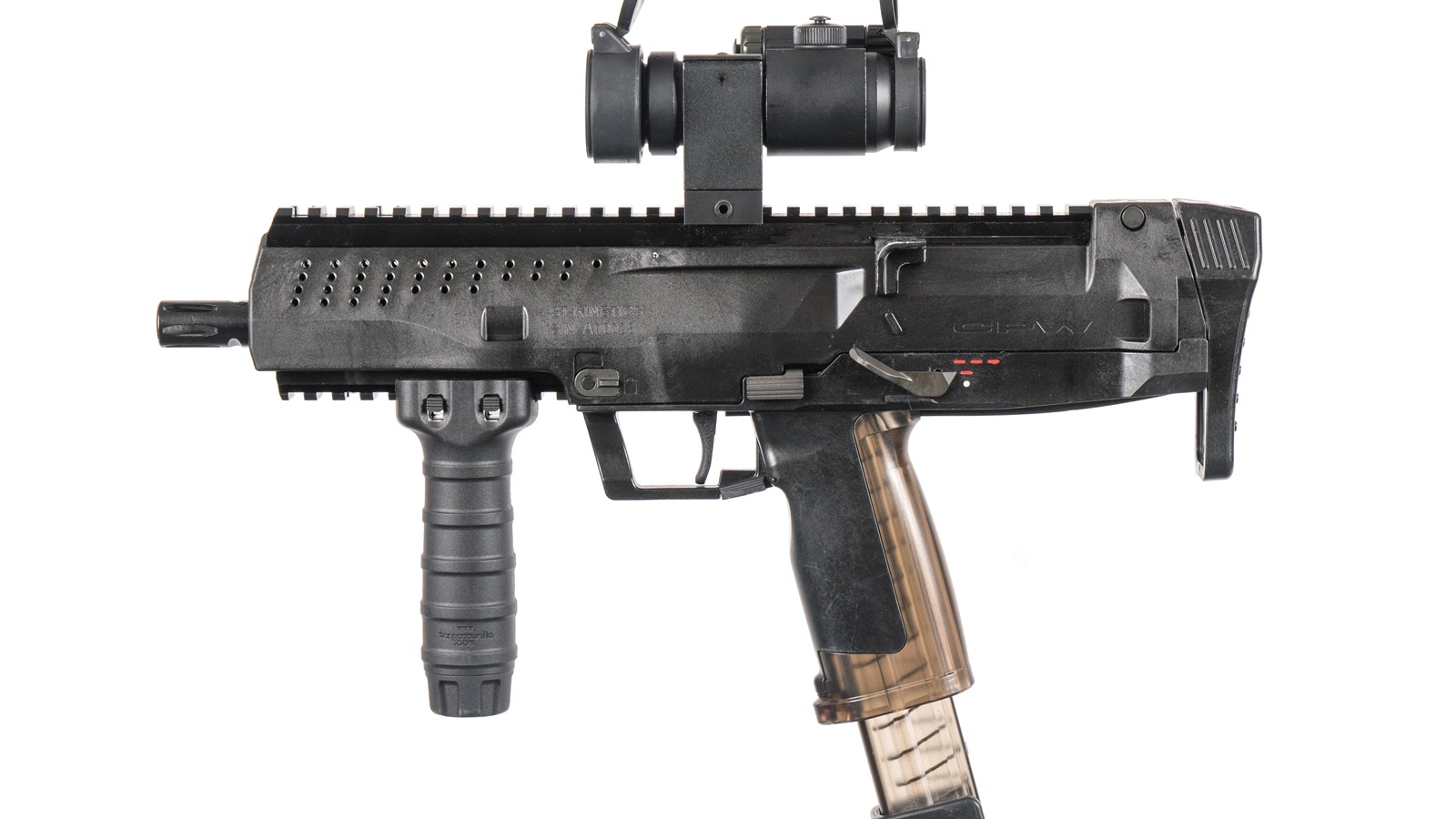 CPW is a cost-effective and compact sub-machine gun made of strong yet light engineering plastic and aluminum alloy. Its unique cam recoil mitigation mechanism reduces recoil significantly with delayed blowback operation for accurate and controlled firing. The retractable buttstock allows CPW to be handled and carried like a conventional pistol for easy concealment for law enforcement and security forces.