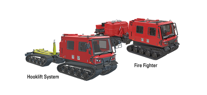 ExtremV is configurable for multiple missions, including transporting logistics, evacuation and firefighting. Due to its modular design, its back cabin can be swapped out easily and replaced with the relevant payload. A wide range of modules has been explored for ExtremV, from hook lift systems to water jets.