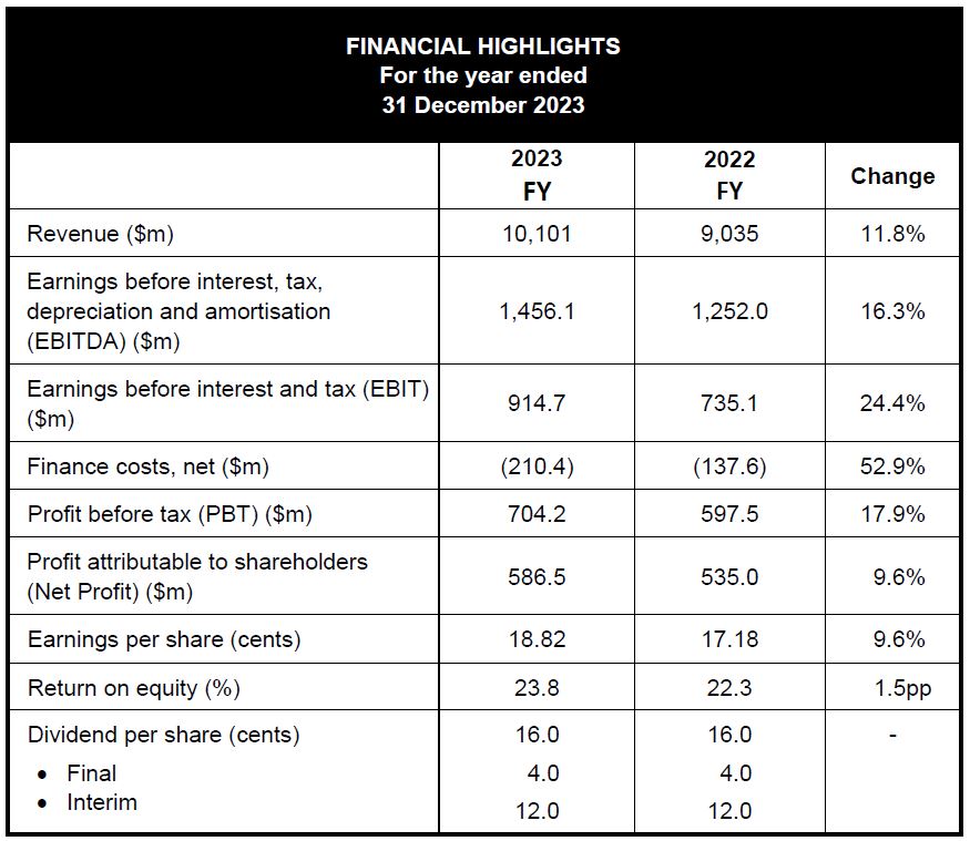 “In 2023, our Group achieved significant financial milestones. Group revenue exceeded $10b while Group Net Profit grew 10% year-on-year to $586m.