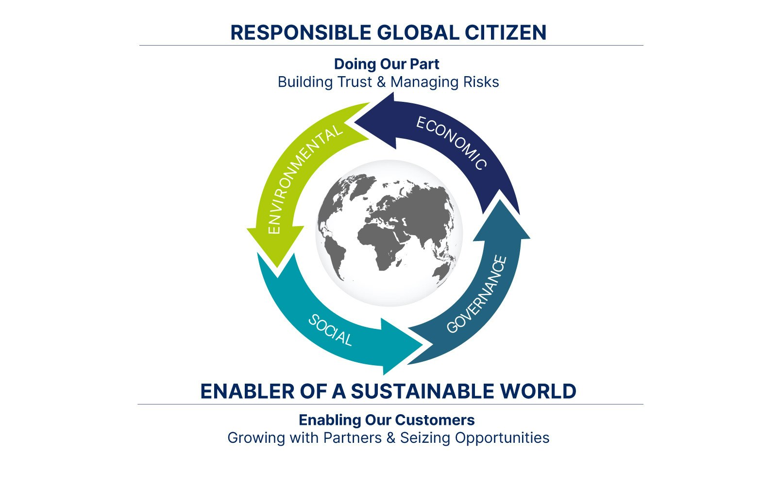 We believe in doing well while doing good, and adopt a two-pronged approach of doing our part and enabling our customers. This includes offering products and solutions that enable our customers to operate sustainably while conducting our business ethically and responsibly.
